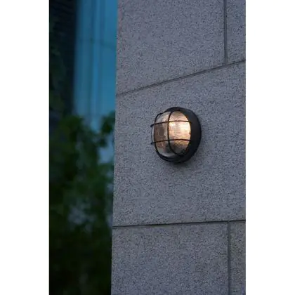 Beschreibung D'Lite Wandleuchte Ecco Schwarz Rund | IP54 - Geeignet für 1x E27