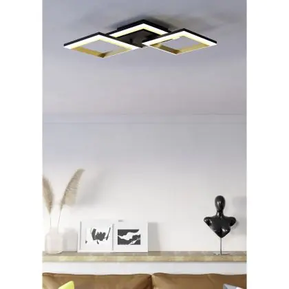Beschreibung Eglo Deckenleuchte Calliera Stahl Schwarz Gold 20W 2500lm - 840 Kaltweiß | IP20 - Dimmbar