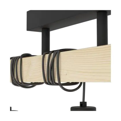 Eglo Deckenleuchte Townshend 5 Stahl Holz Schwarz | IP20 - Geeignet für 3x E27