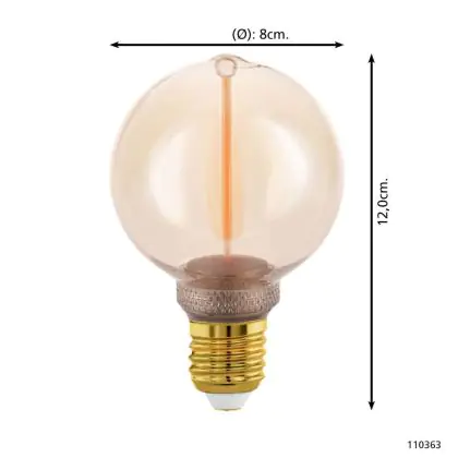 Beschreibung Eglo LED Globe E27 Fadenlampe Messing 2W 100lm - 818 Extra Warmweiß | Dimmbar - Ersatz Für 15W