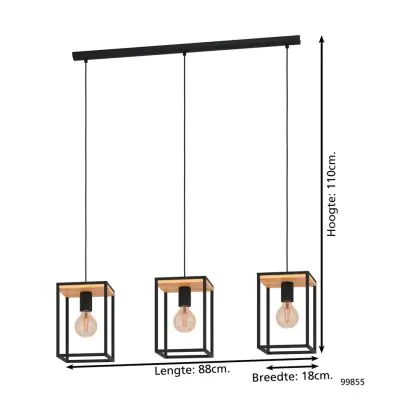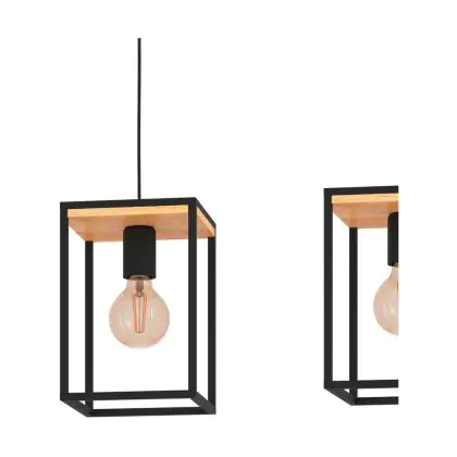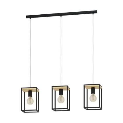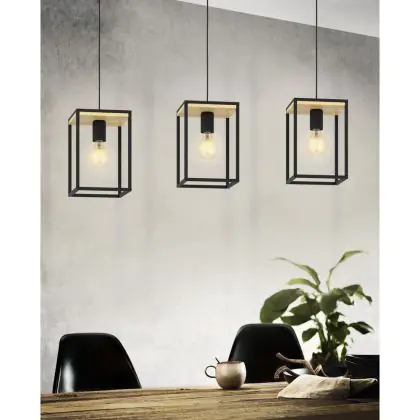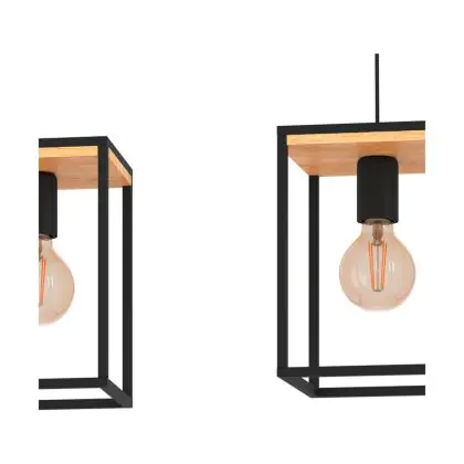 Beschreibung Eglo Pendelleuchte Libertad Stahl Holz Schwarz Braun | IP20 - Geeignet für 3x E27