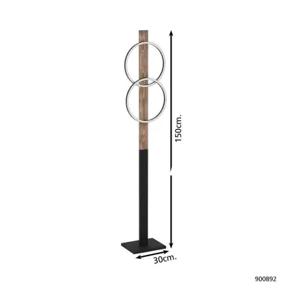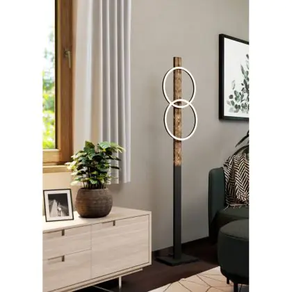 Die Eglo Stehlampe Boyal kombiniert industriellen Charme mit modernem Design. Ihr Gestell aus schwarzem Stahl und rustikalem Holz verleiht ihr eine einzigartige Optik, die sich harmonisch in verschiedene Wohnstile einfügt. Die Leuchte verfügt über zwei runde Metallprofile, die in einem minimalistischen Design angeordnet sind und angenehmes, warmweißes Licht spenden.