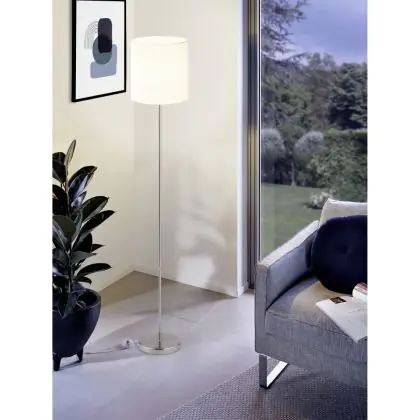 Eglo Stehlampe Pasteri Stahl Satin-Nickel Weiß | IP20 - Geeignet für 1x E27