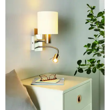 Mit dem Eglo Wandleuchte Pasteri Stahl Satin-Nickel 40 | IP20 - Inkl. Spot und Exkl. 1x E27 bekommen Sie ein Markenprodukt zum besten Preis! Dank der hohen Qualität können wir Ihnen sogar eine 5 Jahre Beleuchtungdirekt.at All-In-Garantie anbieten. Unsere Lichtexperten klären Sie gerne über weitere Produktvorteile auf.