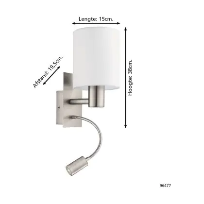 Beschreibung Eglo Wandleuchte Pasteri Stahl Satin-Nickel 40 | IP20 - Inkl. Spot und Exkl. 1x E27