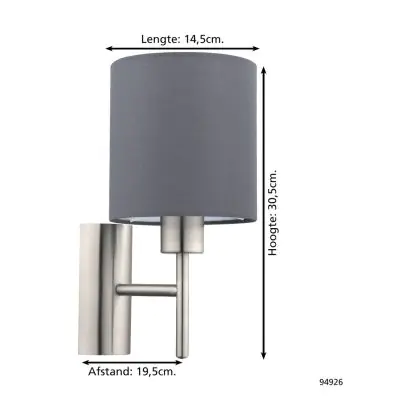 Beschreibung Eglo Wandleuchte Pasteri Stahl Satin-Nickel | IP20 - Geeignet für 1x E27