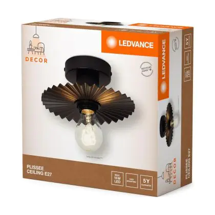 Die LEDVANCE Decor Plissé Deckenleuchte in dunklem Grau bietet eine elegante und moderne Lichtlösung für jeden Raum. Mit ihrem stilvollen Design und der praktischen E27-Fassung ermöglicht diese Leuchte nicht nur eine angenehme Beleuchtung, sondern auch eine ansprechende Ergänzung zu Ihrer Inneneinrichtung.