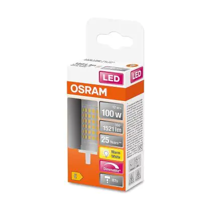 Die Mehrfachpackung 6x Osram LED Linear R7s Parathom 78mm Klar 12W 1521lm - 827 Extra Warmweiß | Dimmbar - Ersatz Für 100W ist eine effiziente R7s LED-Lampe und der perfekte Ersatz für Ihre konventionelle Halogen-Stablampe mit 100W. Zudem strahlt sie Licht in der Farbtemperatur aus und punktet durch eine lange Lebensdauer.