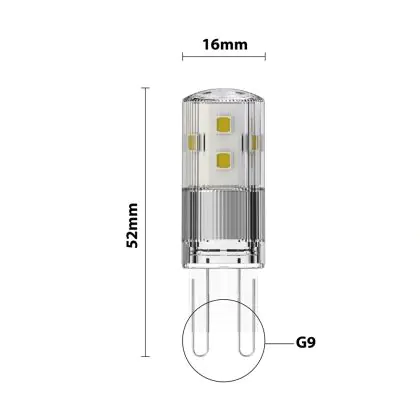 Die durchschnittliche Lebensdauer der G9 LED-Lampe beläuft sich auf 15000 Stunden. Zum Vergleich: Traditionelle Halogenlampen haben eine durchschnittliche Lebensdauer von nur etwa 1.000 Stunden.
