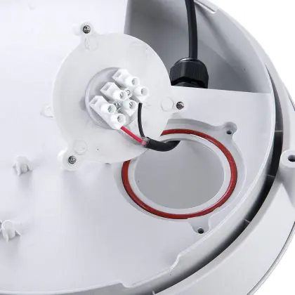 Die hochwertige Noxion-Bulkhead kann als Notfallbeleuchtung mit einer Stunde Leuchtdauer verwendet werden. Außerdem verfügt sie über einen Bewegungs- und Dämmerungssensor mit einer Reichweite von bis zu 8 Metern. Optisch punktet die LED mit schlanker Bauweise, einem Durchmesser von 301 mm sowie einem weißen Gehäuse aus unzerbrechlichem Polycarbonat. Sie ersetzt konventionelle Leuchten mit einem Stromverbrauch von 2x 18 Watt und benötigt selbst nur 13 W. Die Leuchte ist außen anwendbar und hat eine IP66- und IK10-Klassifikation.