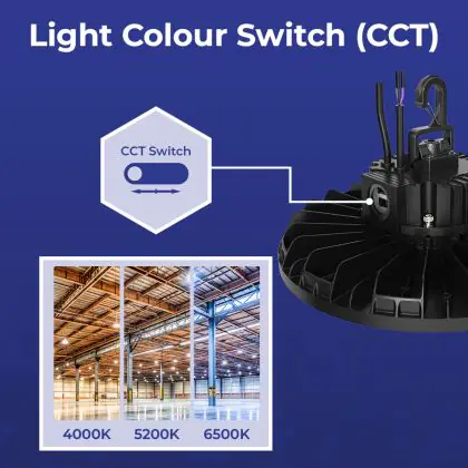 Die LED-Hallenleuchte kommt mit der Farbtemperatur 4000K - 5200K - 6500K CCT daher. Als Faustregel gilt: Je höher der Kelvinwert, desto natürlicher wirkt das Licht. Dies ist besonders in Hallen ohne Tageslichteinfall wichtig.