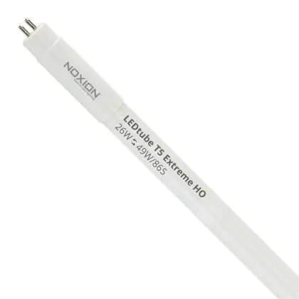 Die Noxion LED Röhre T5 Avant Extreme (HF) High Output 26W 3900lm - 865 Tageslichtweiß | 145cm - Ersatz für 49W ist eine effiziente Noxion T5 LED-Röhre und der perfekte Ersatz für Ihre konventionelle Leuchtstoffröhre mit 49W. Die Röhre hat eine Länge von 1463 mm und einen Durchmesser von 18 mm. Zudem strahlt das Produkt Licht in der Farbtemperatur 6500K - Tageslichtweiß aus und punktet durch eine lange Lebensdauer.