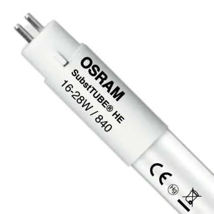 Die Osram LED Röhre T5 SubstiTUBE (HF) High Efficiency 16W 2400lm - 840 Kaltweiß | 115cm - Ersatz für 28W ist eine effiziente LED-Röhre und der perfekte Ersatz für Ihre konventionelle Leuchtstoffröhre mit 28W und einem G5. Die Röhre hat eine Länge von 1150 mm und einen Durchmesser von 16 mm. Zudem strahlt das Produkt Licht in der Farbtemperatur 4000K - Kaltweiß aus und punktet durch eine lange Lebensdauer.