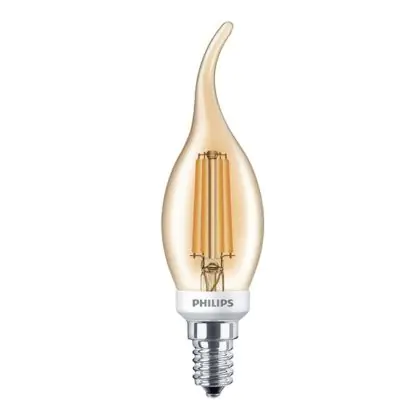 Beschreibung Philips Classic LED Kerze E14 Gebogene Spitze Fadenlampe Gold 5W 410lm - 825 Extra Warmweiß | Dimmbar - Ersatz für 40W