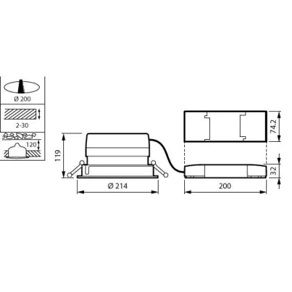 Der Ausschnitt einer Leuchte unterscheidet sich von den Abmessungen der Leuchte selbst und bezeichnet speziell die Größe der Öffnung in der Decke, die für die sichere Montage der Lichtquelle benötigt wird.