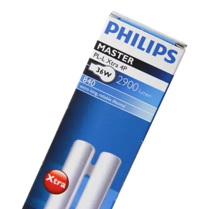 Produkte aus der Philips-Serie sind kompakte Leuchtstofflampen mit getrennten Spannungsversorgungen. Sie sind sehr energieeffizient und können sowohl mit einem elektromagnetischen/konventionellen als auch einem elektronischen Vorschaltgerät verwendet werden. Die PL-L Lampe von Philips ist 417 mm groß, besitzt eine Leistung von 36 Watt und besitzt einen 2G11 Sockel.
