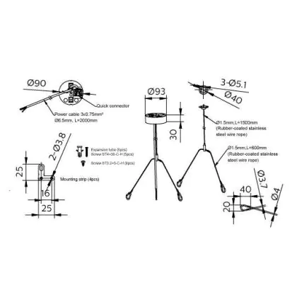 - Material und Design: Gefertigt aus robustem Stahl mit einer weißen Beschichtung, fügt sich der Aufhängungssatz nahtlos in unterschiedliche Raumgestaltungen ein.