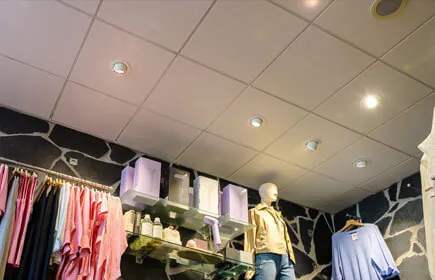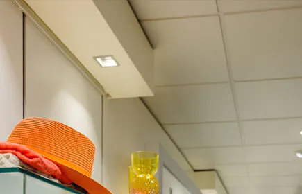 • Im Geschäft wurden nur Leuchten mit weißer Lichtfarbe verwendet, die eine ruhige Decke schaffen. Dadurch wird sichergestellt, dass die Besucher das Sortiment sofort im Blick haben (keine Ablenkung).