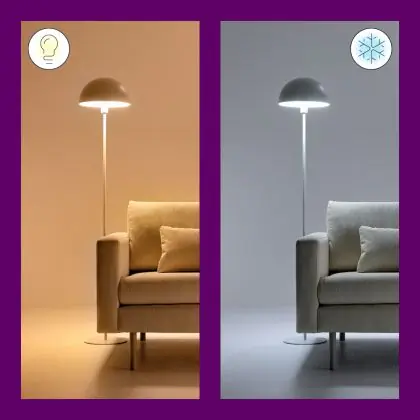 Die E27 LED-Lampe von WiZ kann mit der Farbtemperatur sowohl als Akzent- als auch als Allgemeinbeleuchtung verwendet werden. Als Faustregel gilt: Je niedriger der Kelvinwert, desto gemütlicher wirkt das Licht.